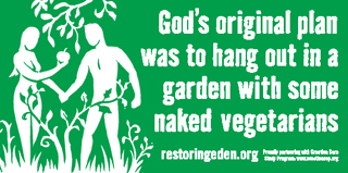 Restoring Eden, officially Christians for Environmental Stewardship, was formed in the early 1990s by Peter Illyn, an evangelical pastor from the Pacific Northwest. I’m not evangelical, I’m not vegetarian, and no comment on the naked thing……But I say jolly well done, Pastor Illyn!